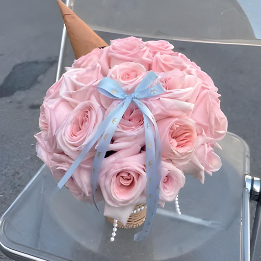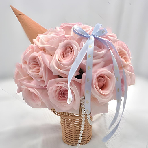 STRAWBERRY ICE CREAM CONE | PINK LYCHEE ROSES BOUQUET