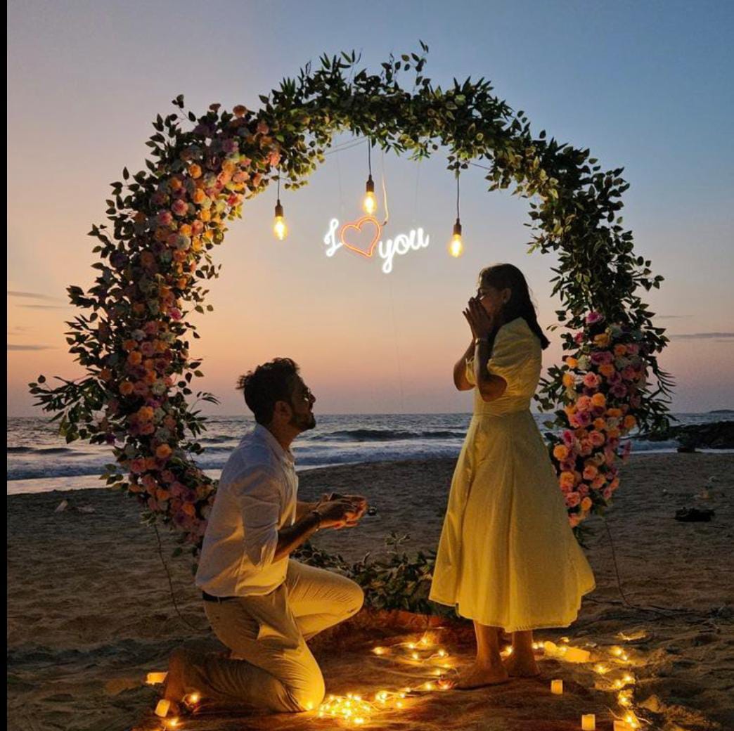 A carefully arranged proposal setup with romantic decorations and personalized touches, designed to turn your proposal into a memorable and picture-perfect experience.