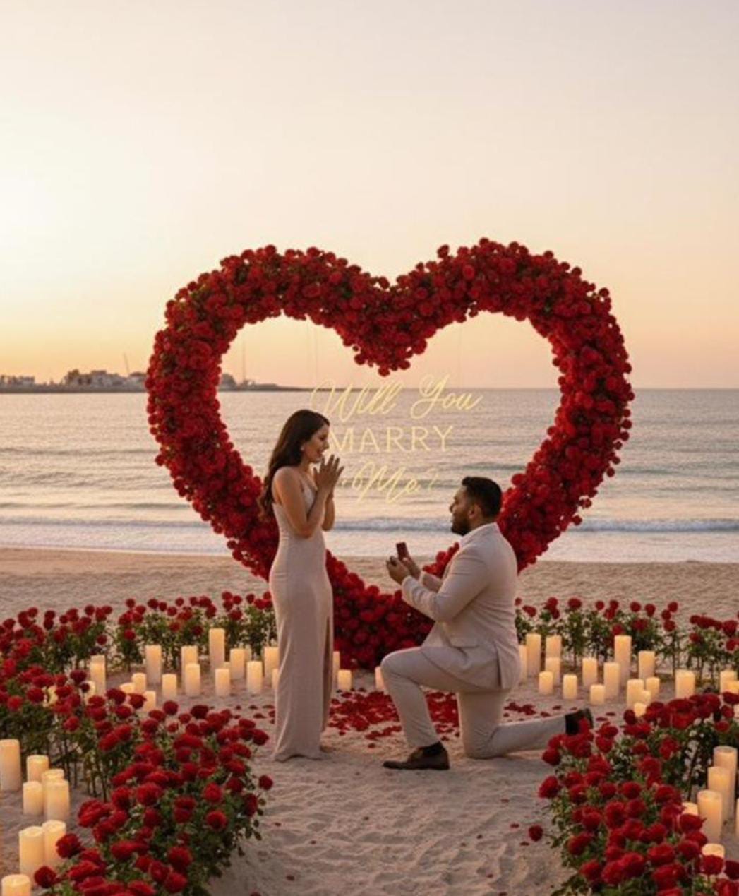 A carefully arranged proposal setup with romantic decorations and personalized touches, designed to turn your proposal into a memorable and picture-perfect experience.